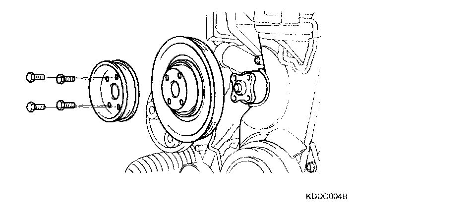 4. Remove the drive belts and the water pump pulley. (10 mm 4 bolts)
