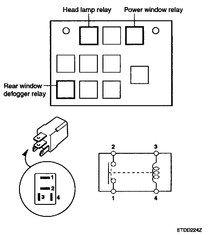 1. There should be continuity between the No.1 and No.2 terminals when power and ground are connected to the No.3 and No.4 terminals.
