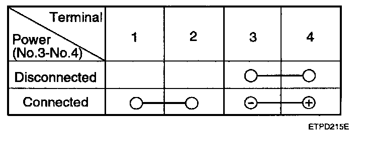 2. There should be continuity between the No.1 and No.4 terminals when power is disconnected.