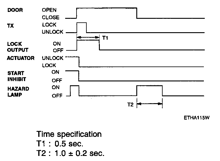 - Pressing the unlock button on the TX key. The hazard lamps shall be flashed twice for 1 sec period (of cycle), 50% duty rate.