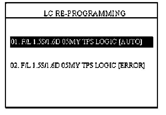 4. Select option "02. F/L 1.5S/1.6D 05MY TPS LOGIC [ERROR]" and press ENTER.