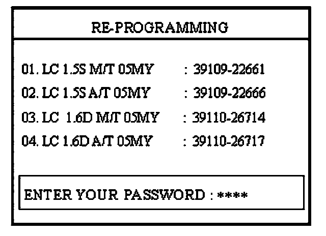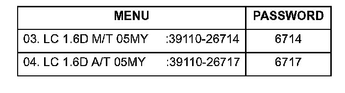 ^ In the event that option "01. F/L 1.55/1.6D 05MY TPS LOGIC [AUTO]" fails to download the new ECM program, option "02. F/L 1.5S/1.6D 05MY TPS LOGIC [ERROR]" must be used.