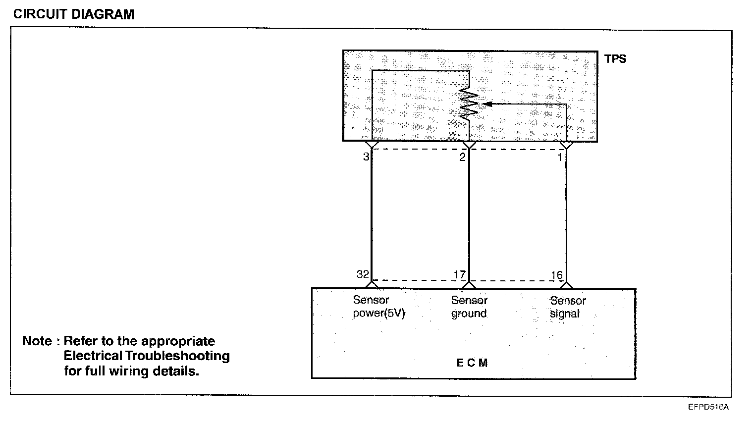 1. The TPS signal is important for the control of the automatic transaxle. Shift shock and other trouble may occur if the sensor is faulty.