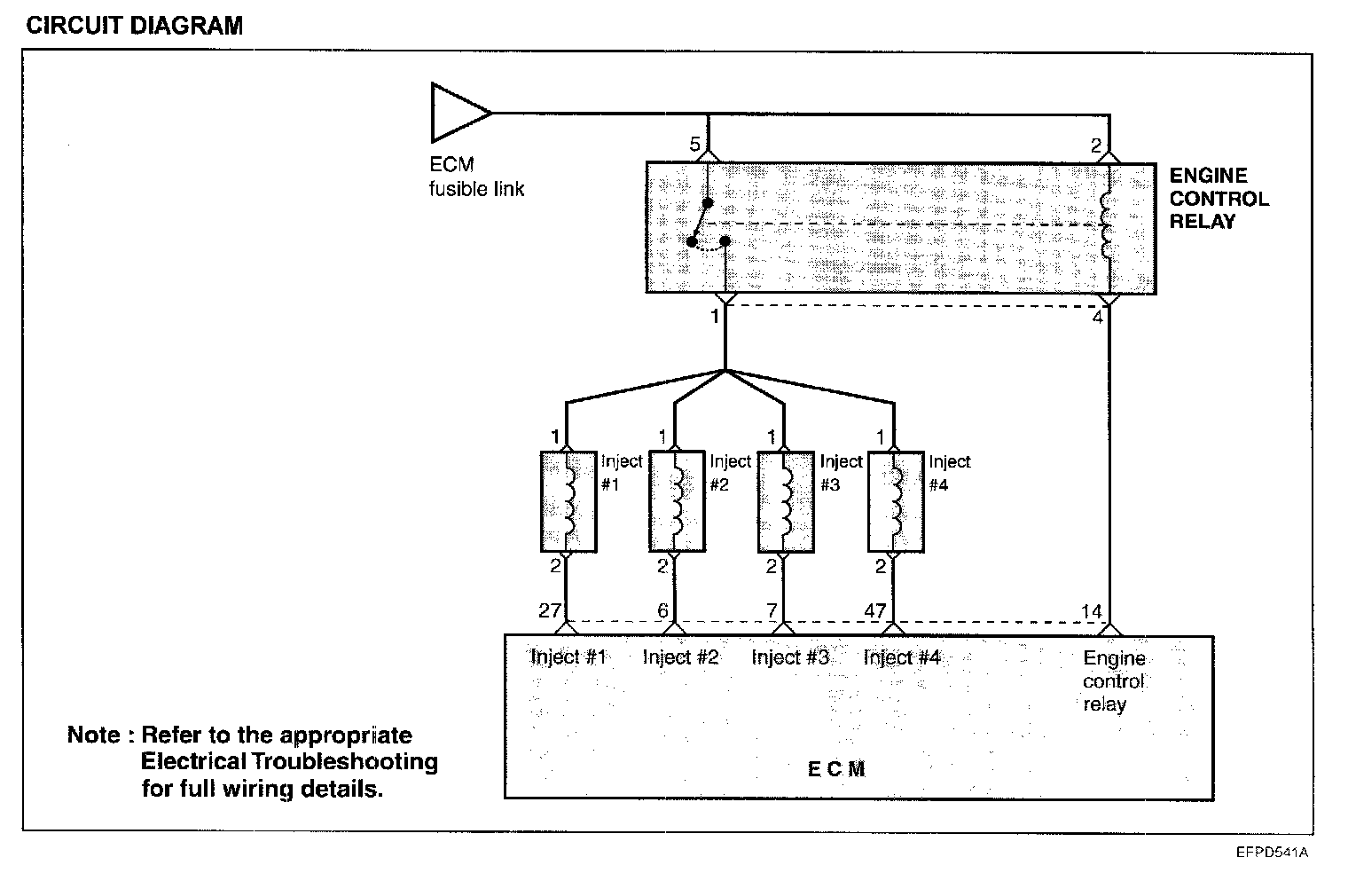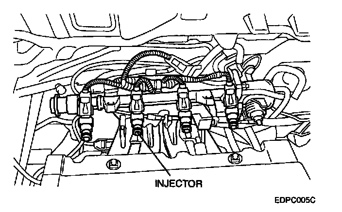 The injectors inject fuel according to a signals from the ECM. The volume of fuel injected by the injector is determined by the time during which the solenoid valve is energized.