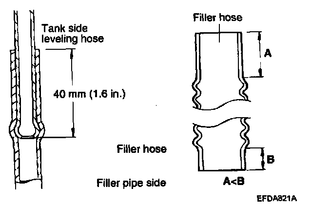 2. Connect the leveling hose to the tank and at the filler neck by approximately 40 mm (1.6 in.).