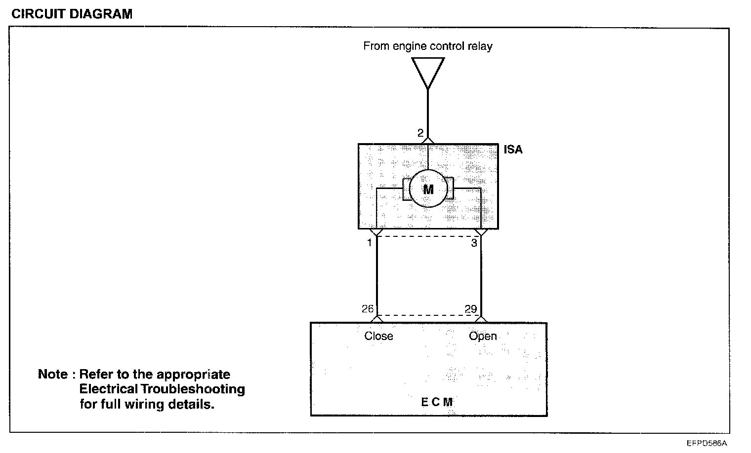 Open or short circuit is observed in idle air control system when ignition switch is turned on.