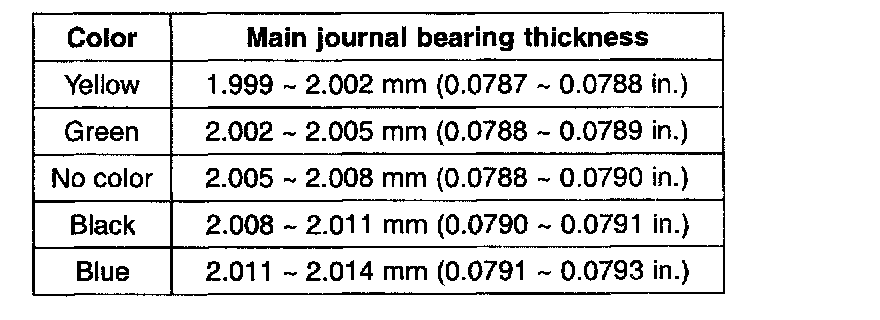 MAIN JOURNAL BEARING THICKNESS / NO 1 2 4 5 (MAIN BEARING):