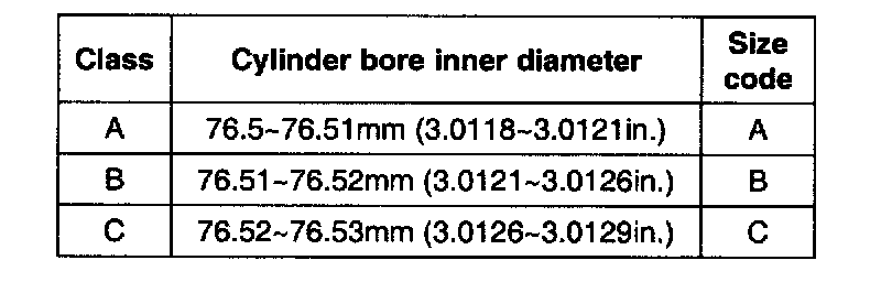 Oil ring side rail: ...........0.2 - 0.7 mm (0.0079 - 0.0276)