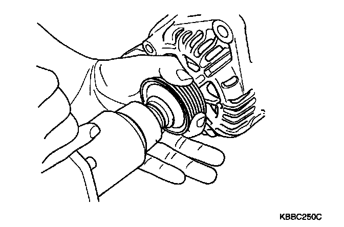 4. Remove the nut, pulley and spacer.