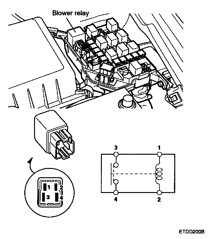 1. There should be continuity between the No.1 and No.2 terminals when power and ground are connected to the No.4 and No.3 terminals.