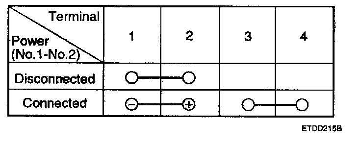 2. There should be continuity between the No.1 and No.4 terminals when power is disconnected.