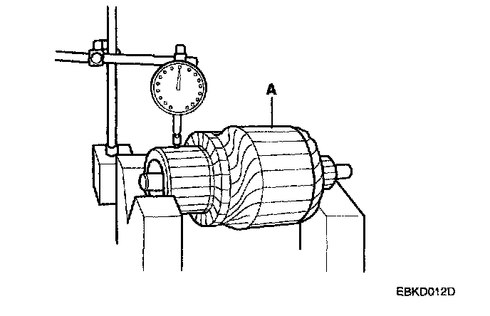 6. Measure the commutator (A) runout.
