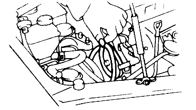 4. After removing the power steering oil pump mounting bolts and the tension adjusting bolt, remove the power steering oil pump assembly.