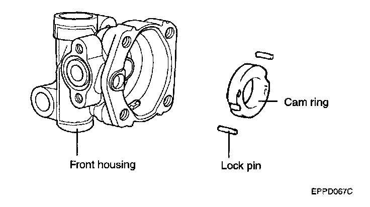 5. After inserting the lock pin into the groove of the front housing, install the cam ring attending to the direction.
