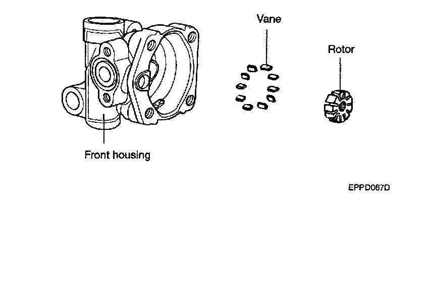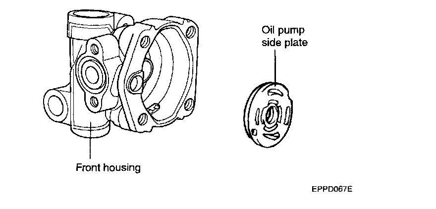 8. Check that there is no striped wear in the side plate or contacting part between the shaft and the pump cover surface.