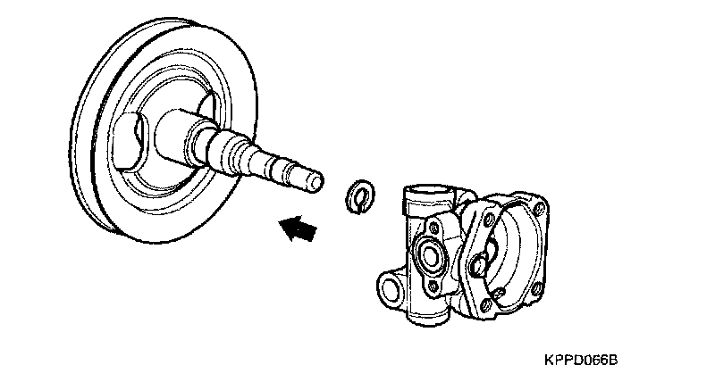 3. Install the pulley and shaft assembly to the oil pump body.