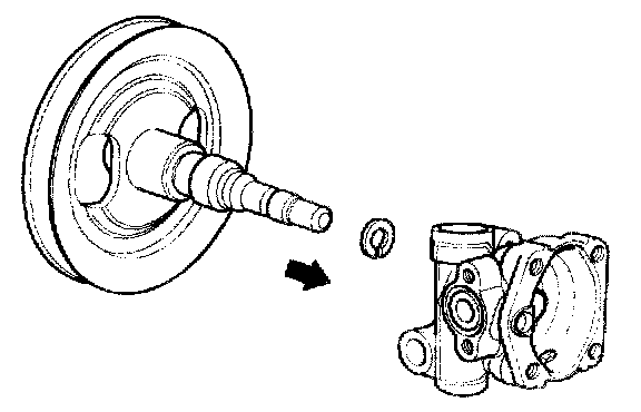 7. Remove the pulley and shaft assembly from the oil pump body.