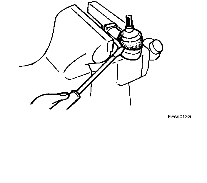 2. After mounting the tie rod end in a vise, remove the dust cover from the ball joint.