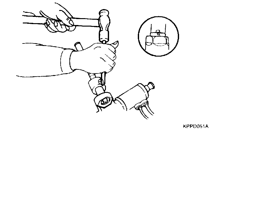 11. Install the tie rod and punch on a point over the tie rod with a chisel.