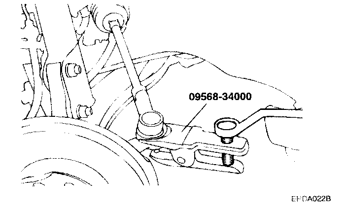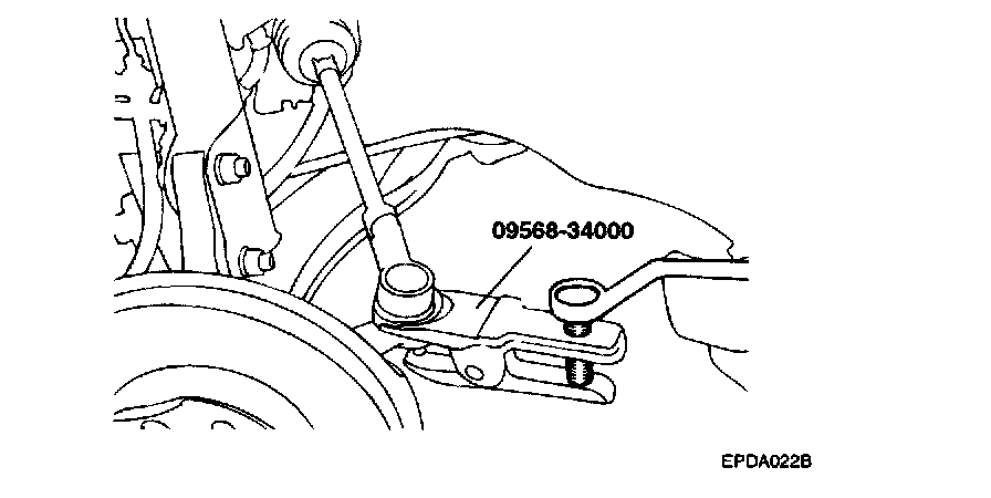 3. After removing the split pin, disconnect the tie rod from the knuckle by using the special tool.