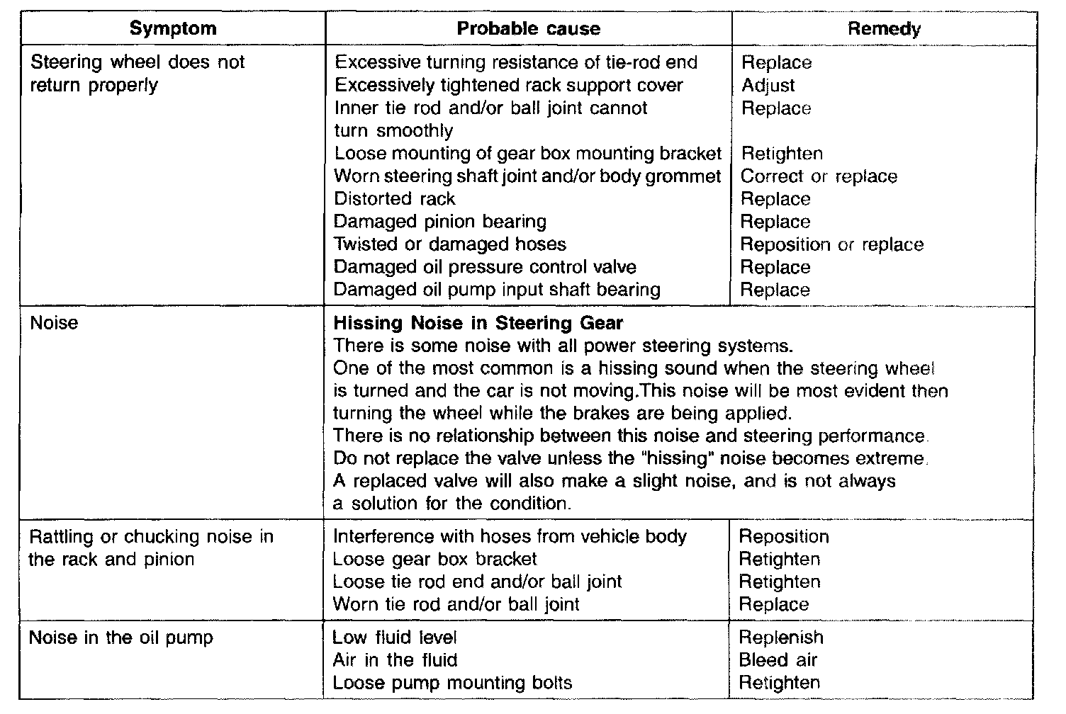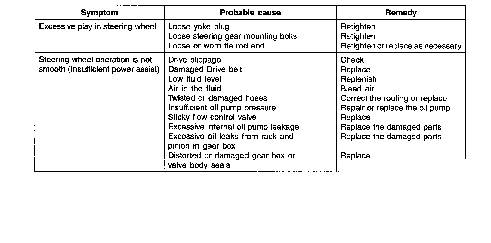 TROUBLESHOOTING (POWER STEERING)TROUBLESHOOTING (POWER STEERING):