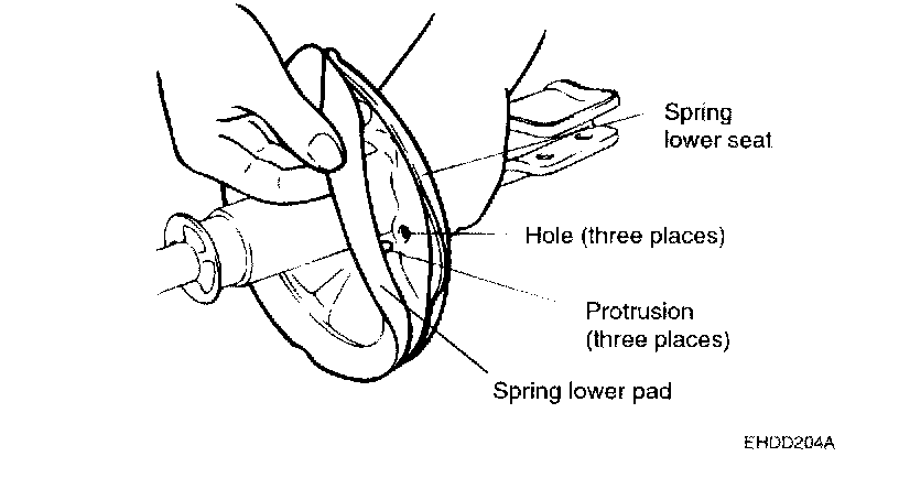 1. Install the spring lower pad with the protrusions fitted in the holes of the spring lower seat.