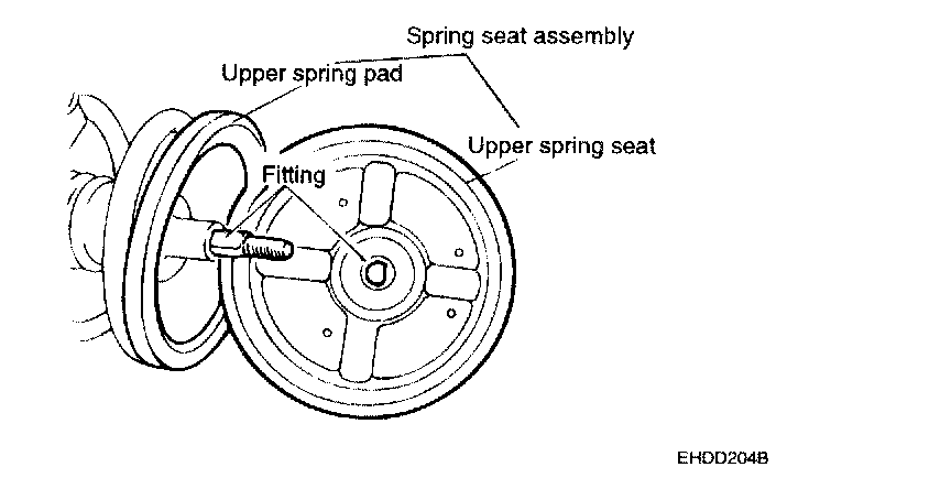 NOTE: Align the D-shaped hole in the spring seat assembly with the indentation on the piston rod.