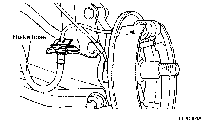 6. Remove the brake hose clip and detach the brake hose from the shock absorber.