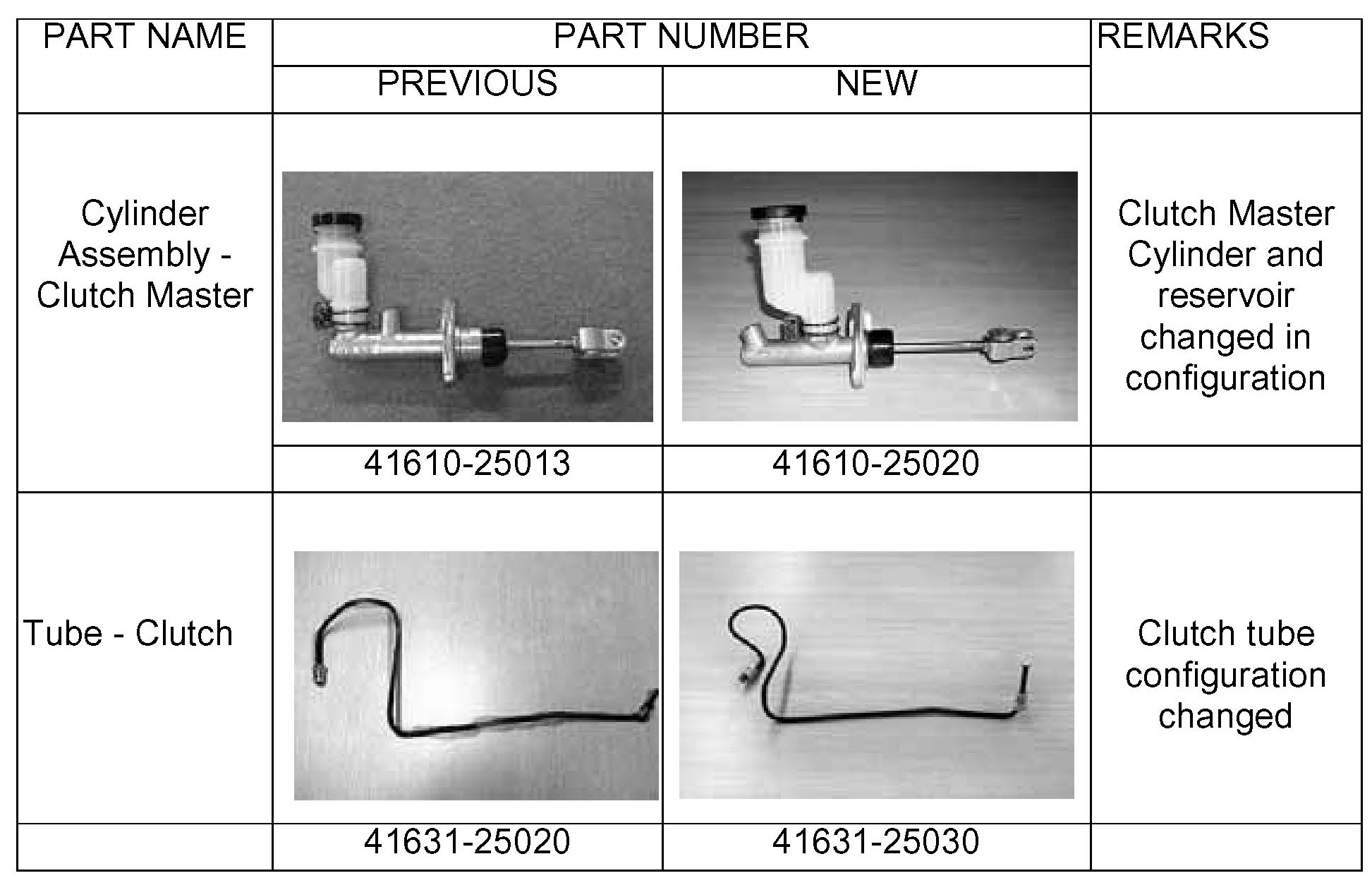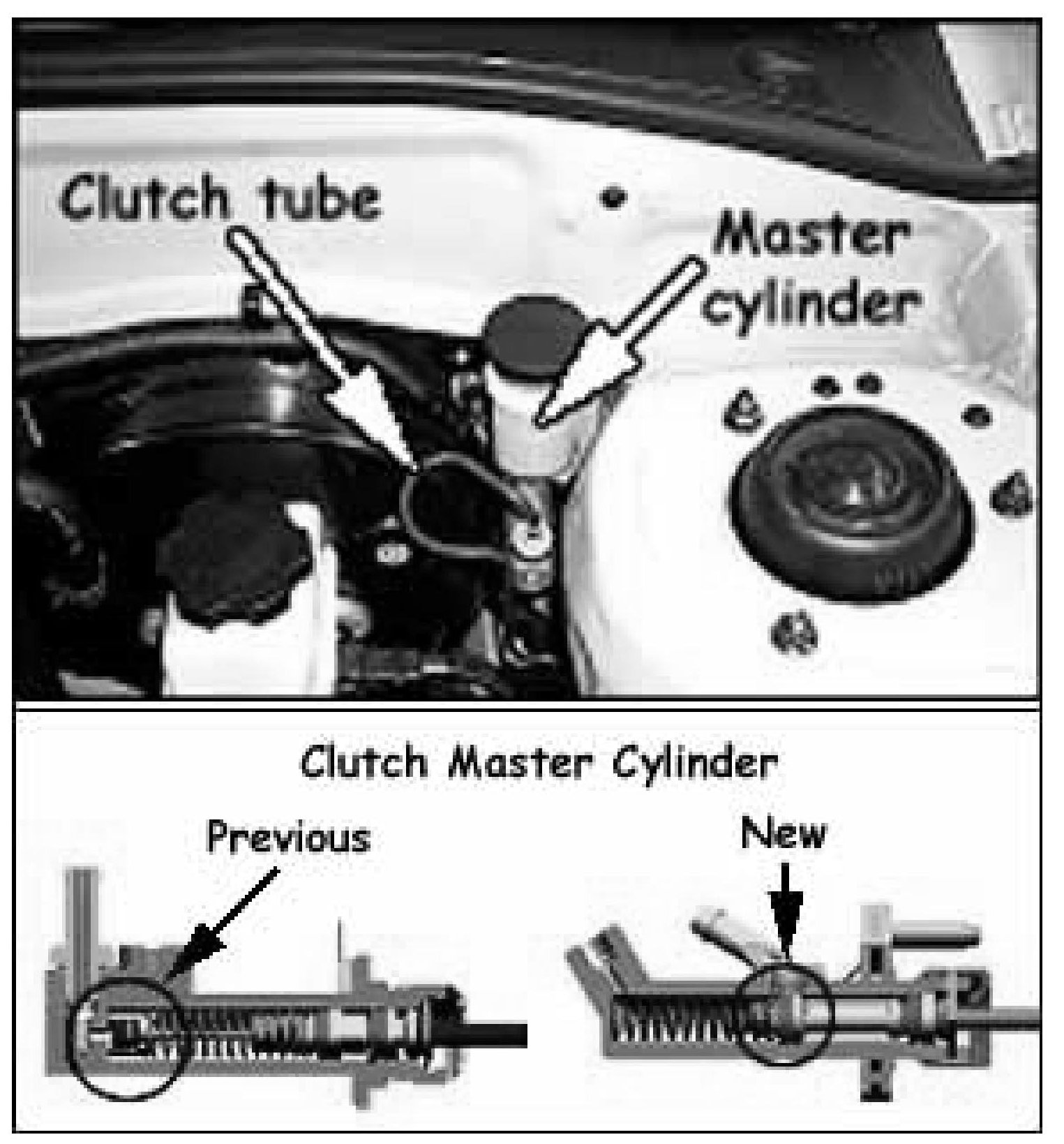 A new style clutch master cylinder has been applied in production beginning on September 16, 2003. This bulletin provides information about the previous and new style components.