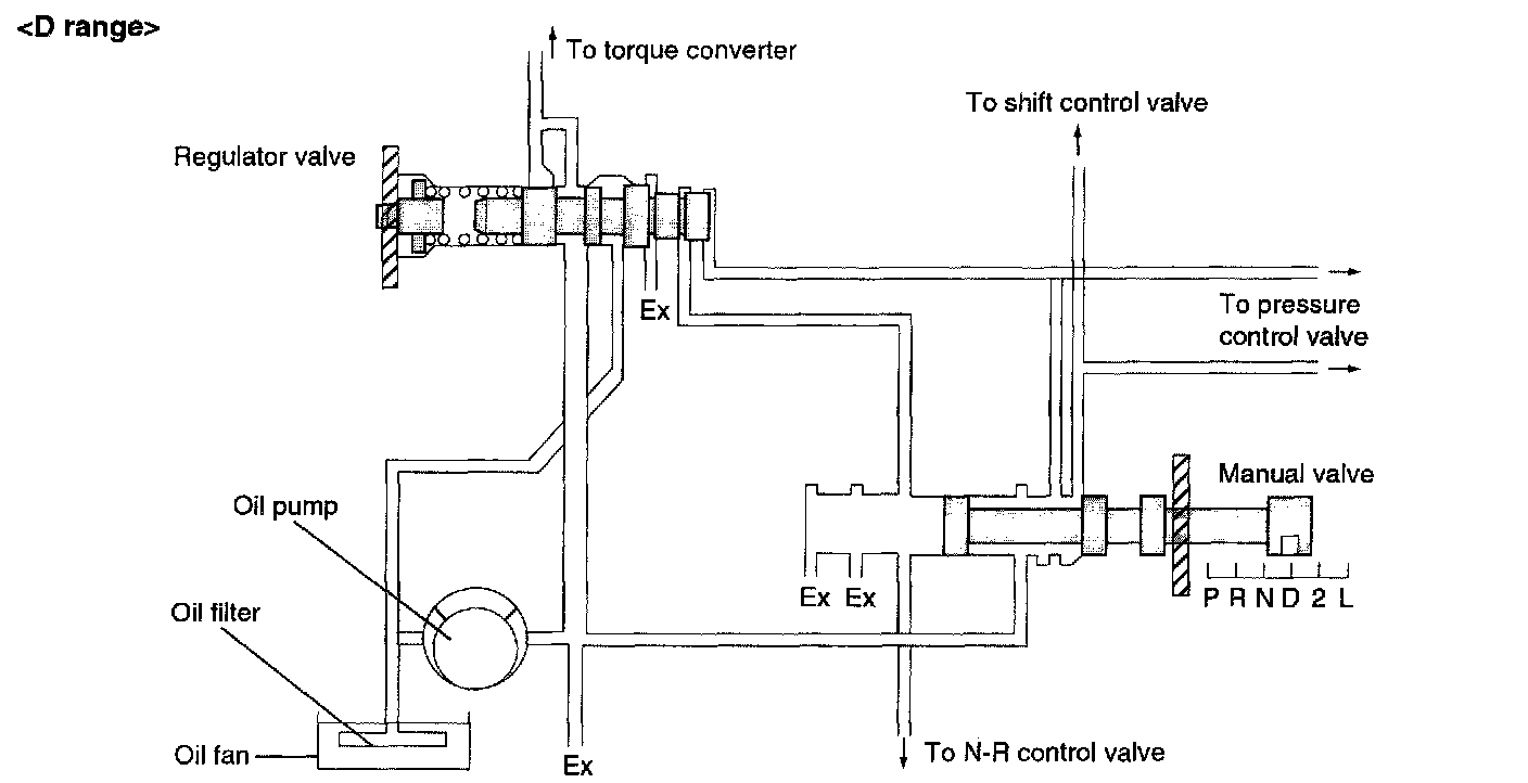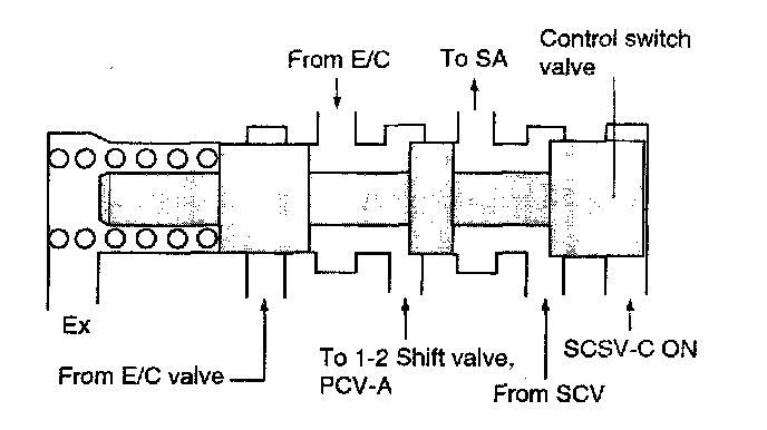 ^ The E/C pressure from shift control valve is intercepted at the E/C valve during up-shifting from 2nd to 3rd gear.