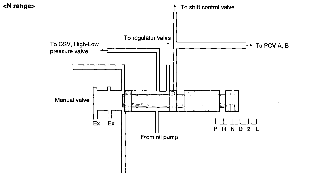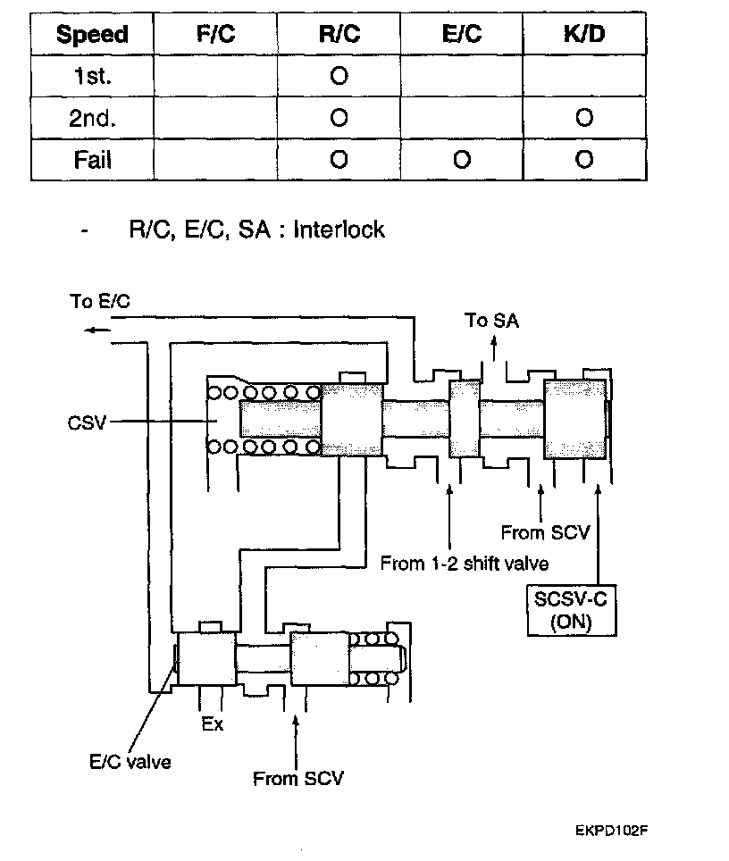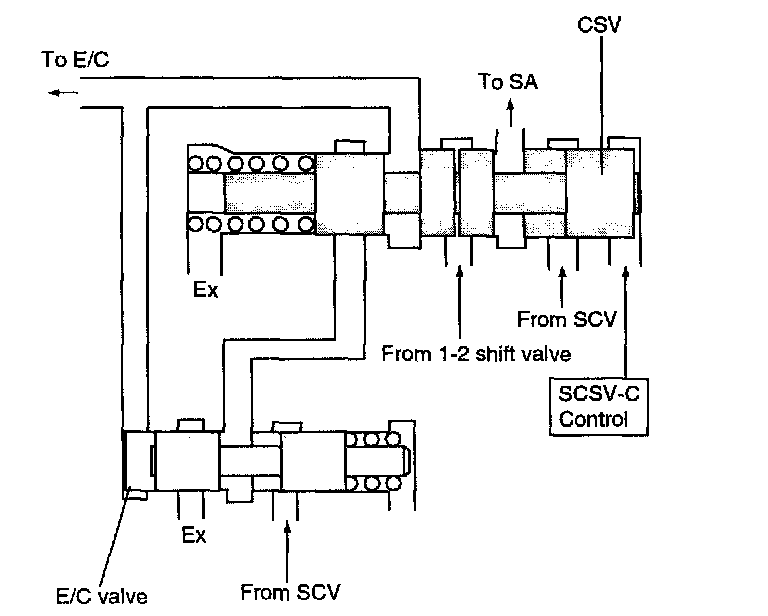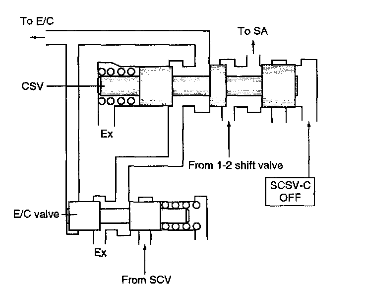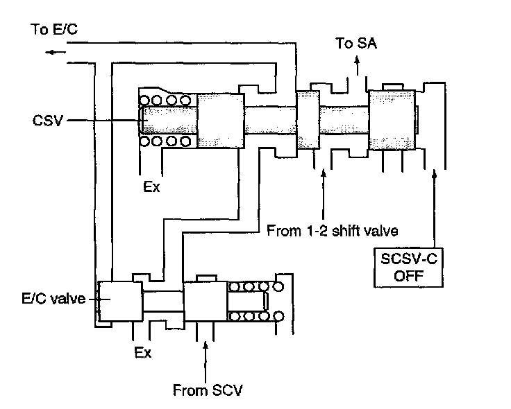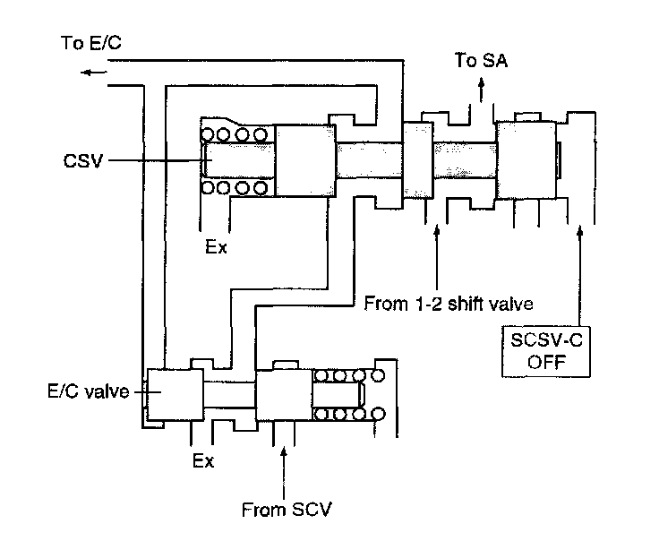 ^ The E/C pressure is supplied from 1-2 shift valve at the CSV after finishing the up-shifting from 2nd to 3rd gear.