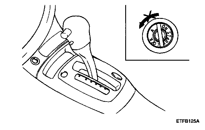 2. Check that the ignition key turns to the "LOCK (OFF)" position, when the shift lever is set to the "P" position.