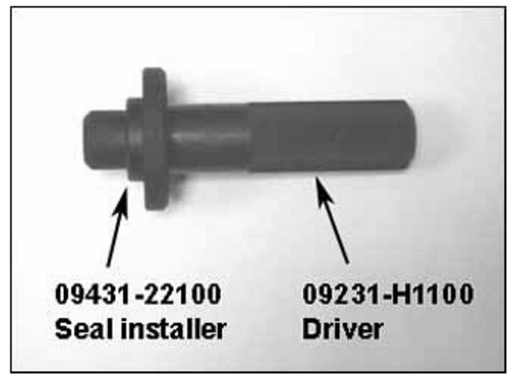 Use the special tool, P/N 09431-22100 and the driver to install the oil seal.