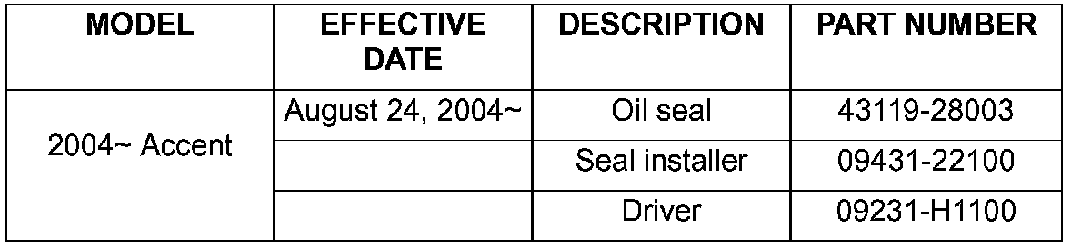 A new oil seal installer is available to install the differential oil seal with steel backing.