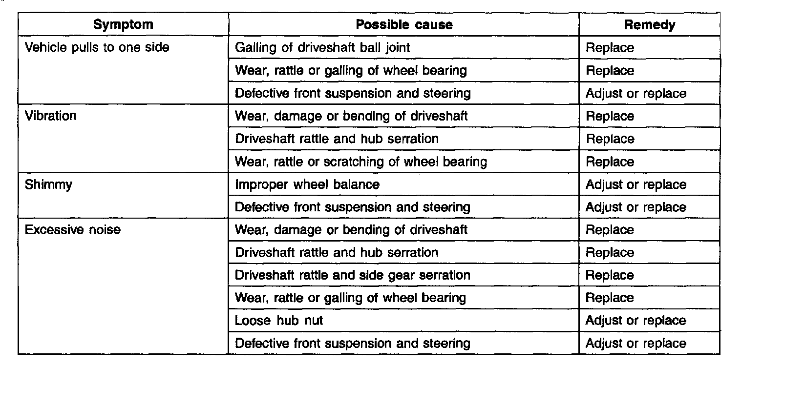 Drive Axles, Bearings and Joints: Testing and Inspection
