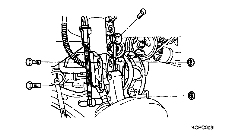 14. Remove the bolt for the upper connection of the engine and the transaxle.