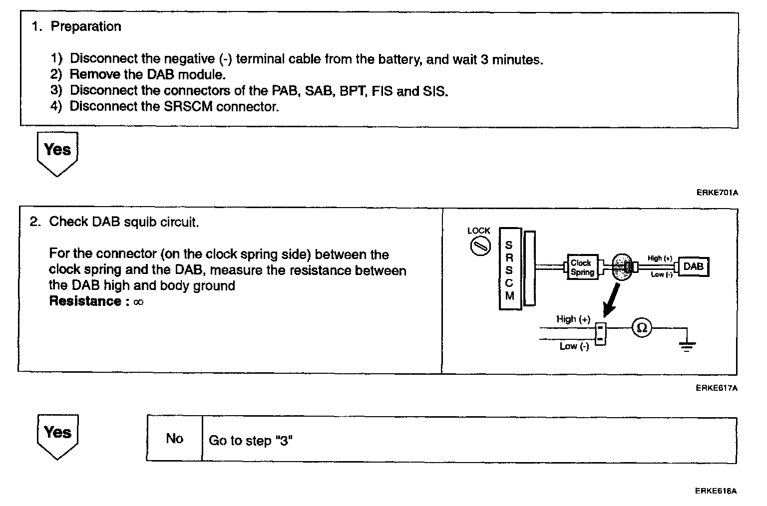 The squib circuit consists of the SRSCM, clock spring and DAB