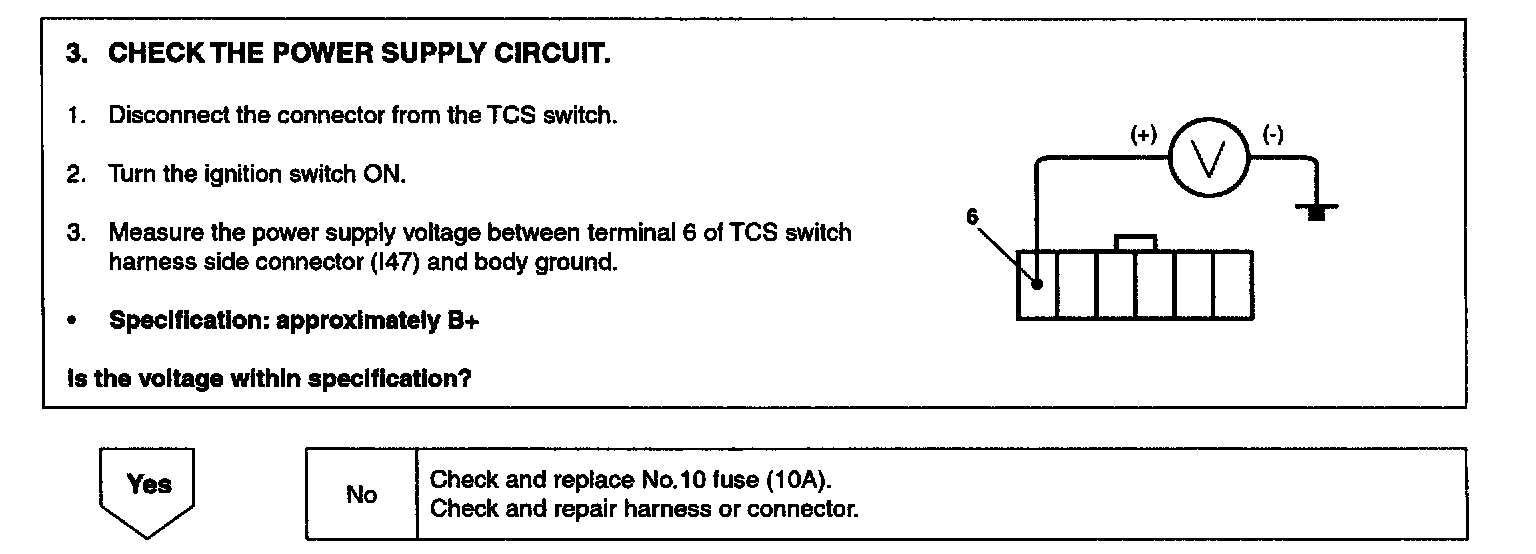 Inhibit the TCS control and allow the ABS/EBD control. Meanwhile, stop checking the TCS switch failure under the TCS control.