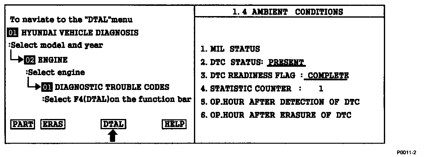 2. Press F4(DTAL) to select DTC information from the DTCs menu