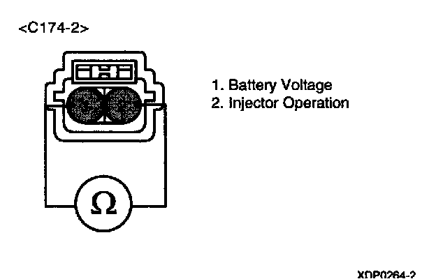 3. Measure resistance between terminals 1 and 2 of the injector connector(Component side).