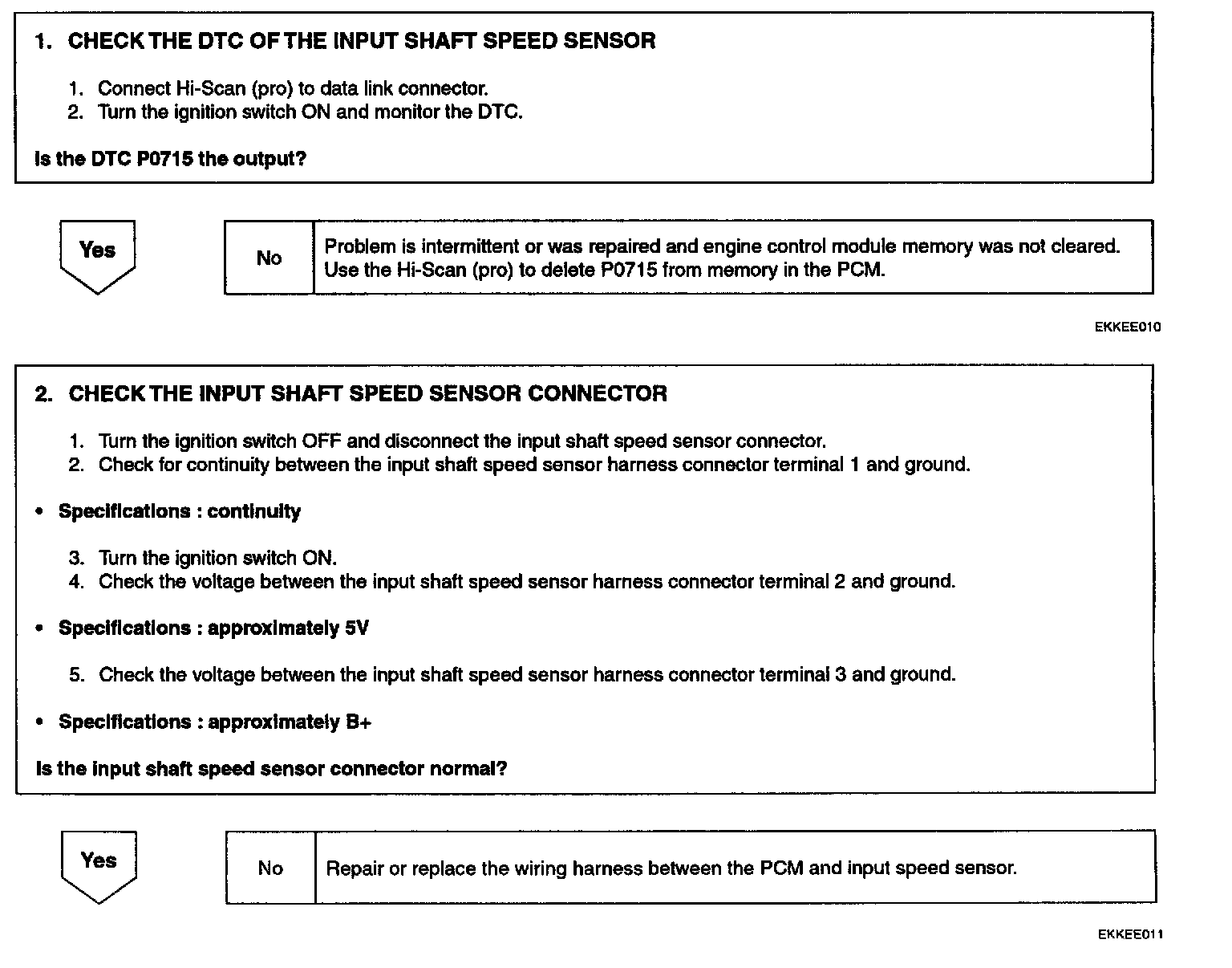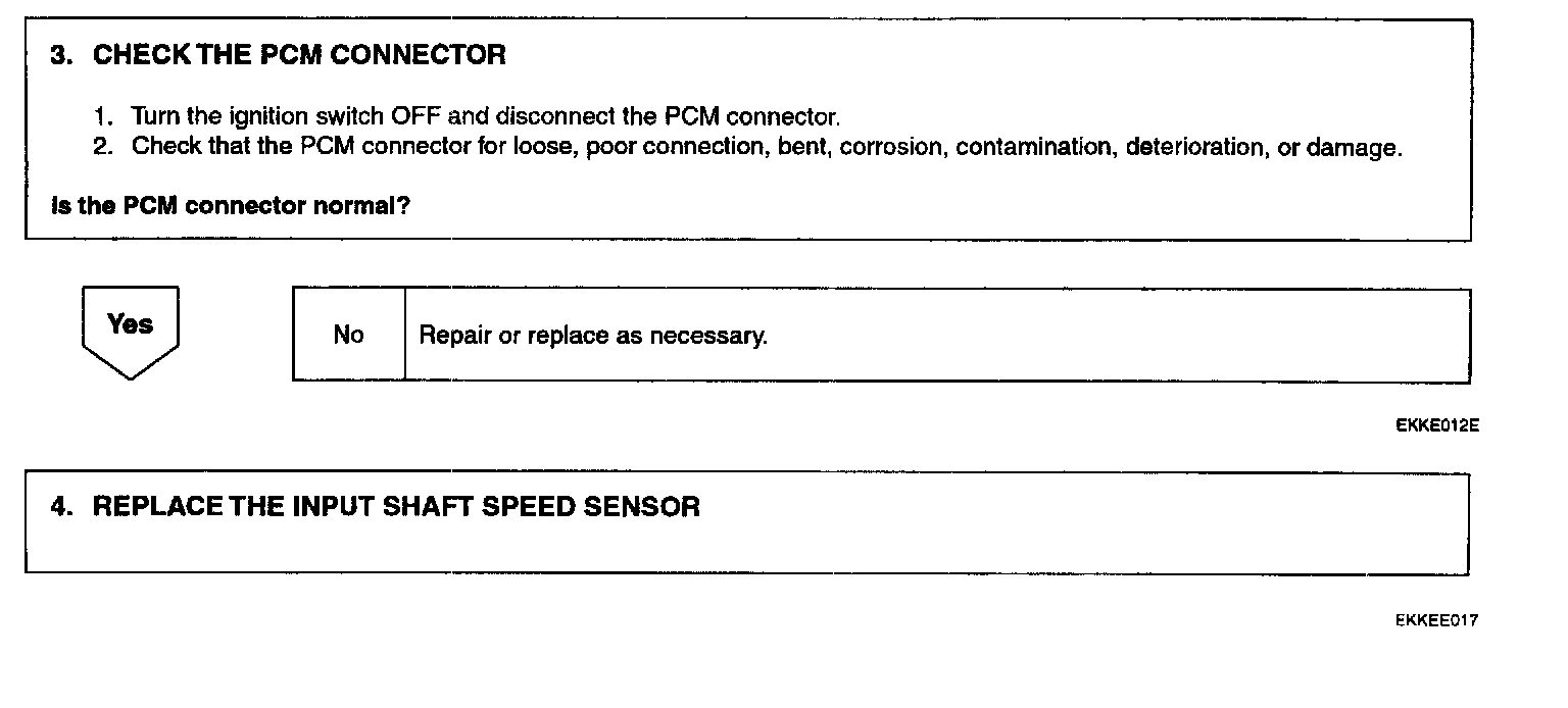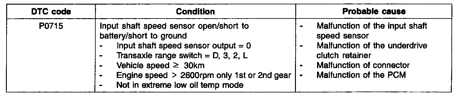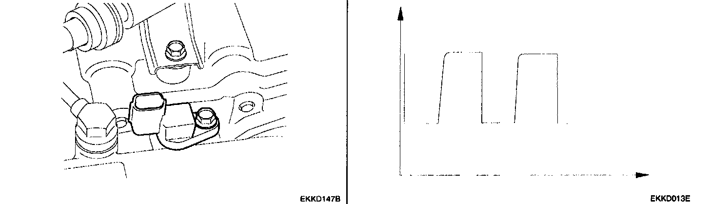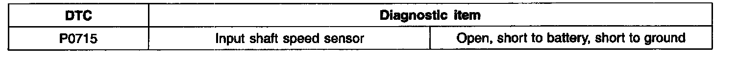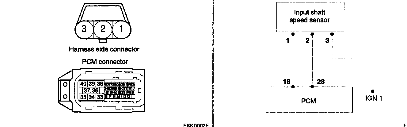 DESCRIPTIONThe input shaft speed sensor is an open collector type that sends a signal to the PCM that indicates input shaft speed.