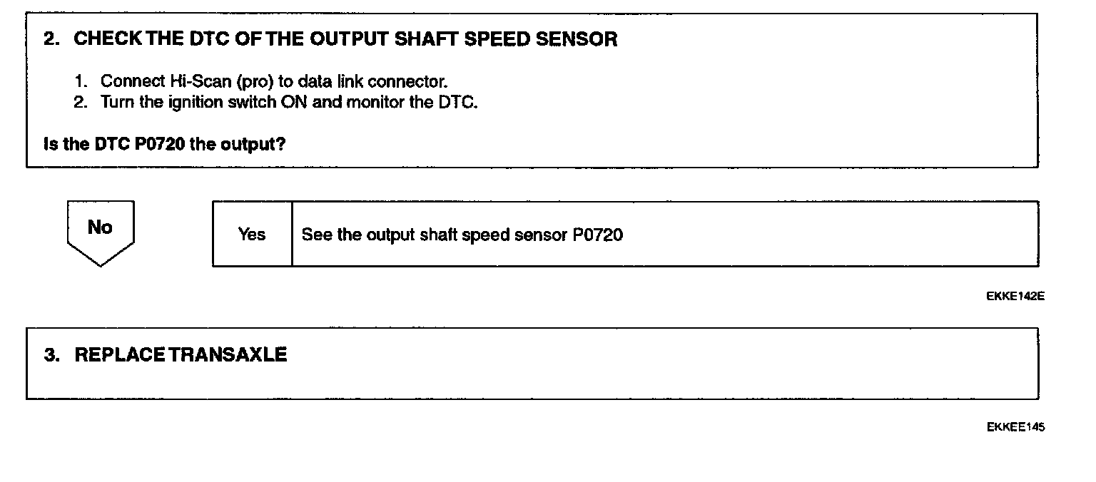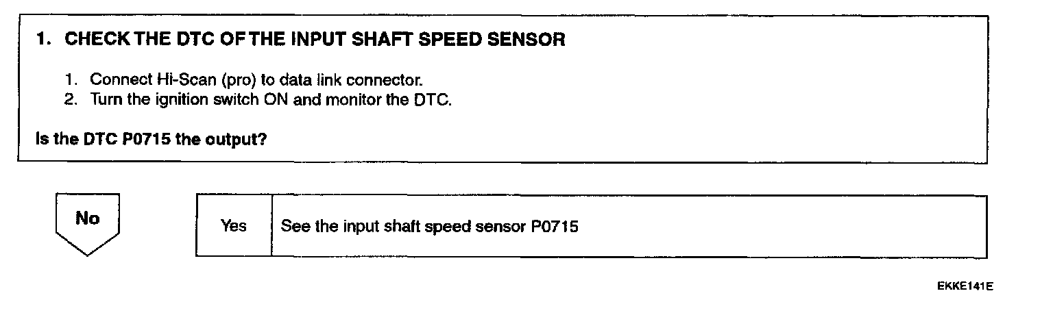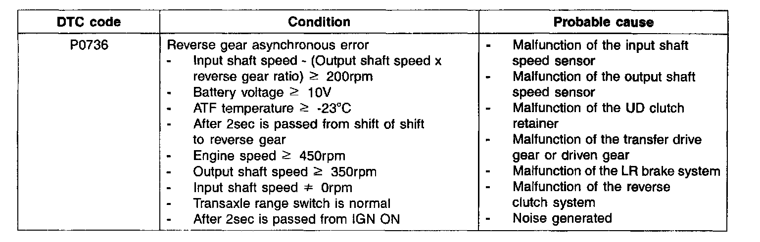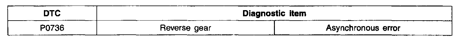 DESCRIPTIONIf the value resulting from driving the input shaft rotation speed output by the reverse gear ratio does not match the output shaft rotation speed output after reverse gear is engaged, DTC P0736 is output.