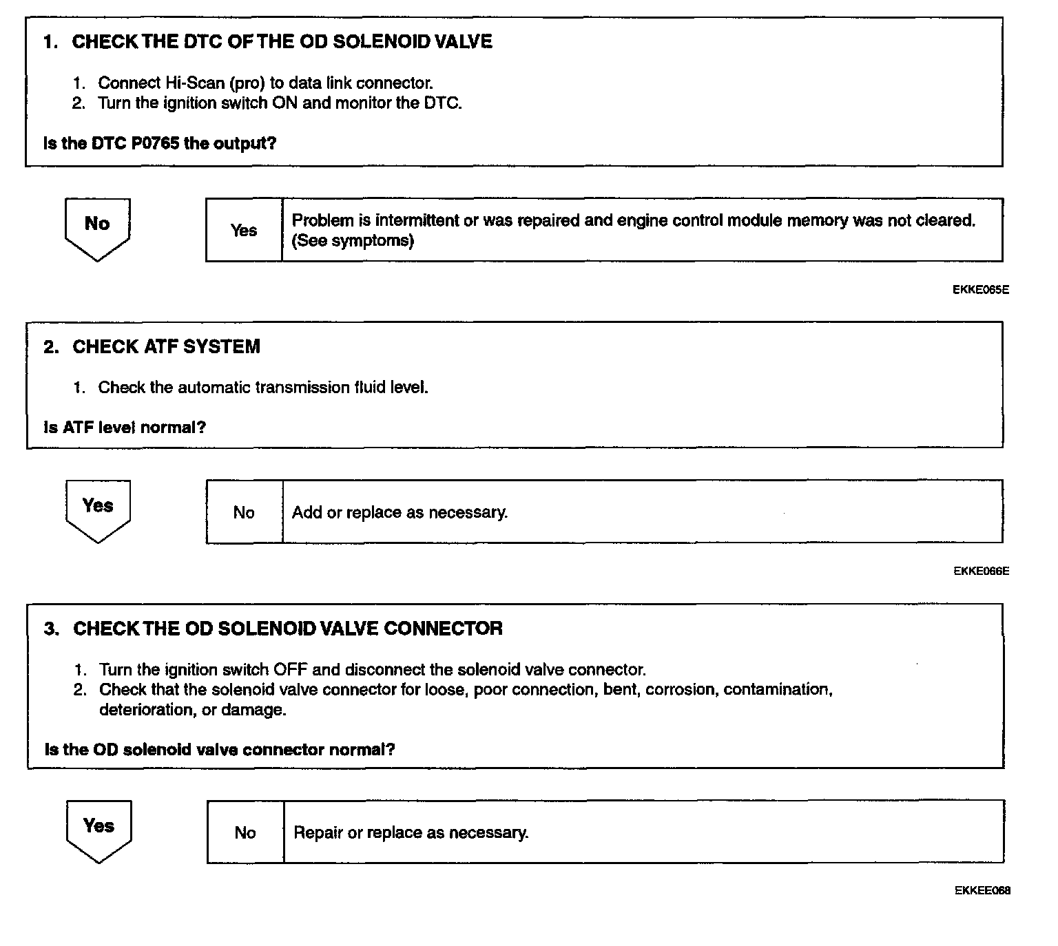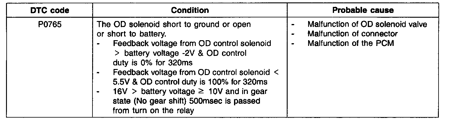 The input shaft and overdrive planetary carrier are connected when the OD solenoid operation. The OD solenoid is operated at the 3rd, 4th gear.