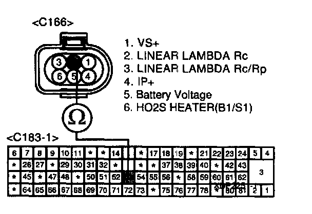 The linear O2 sensor is mounted on the front side of the Catalytic Converter (warm-up catalytic converter) or in the front exhaust pipe. It detects a wide range of air/fuel ratios in the exhaust gas from the rich to lean regions. This linear O2 sensor produces a current that corresponds to a specific air/fuel ratio. The PCM monitors this signal and determines whether the air/fuel mixture is rich or lean. The PCM constantly monitors the linear O2 sensor and increases or decreases the fuel injection duration using this signal. This is called closed-loop fuel control operation.