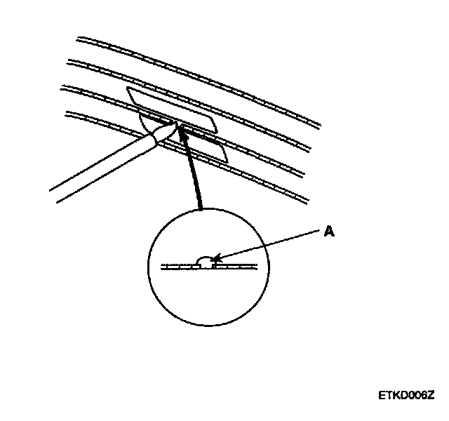2. Touch one tester probe to the glass antenna terminal (A), and move the other tester probe along the antenna wires to check that continuity exists.
