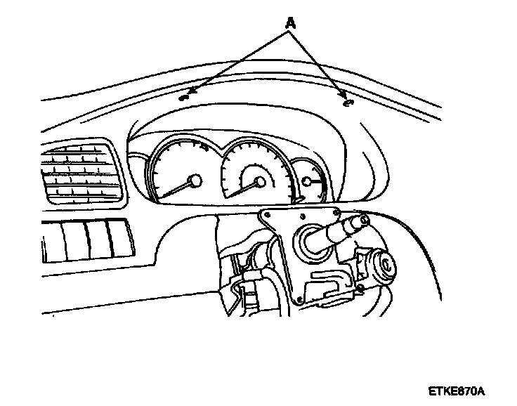2. Remove the 2 screws (A) holding the instrument facia panel.
