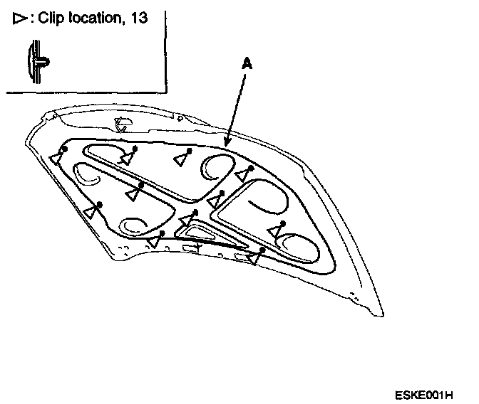 1. Using a clip remover, detach the clips, and remove the hood insulator (A).