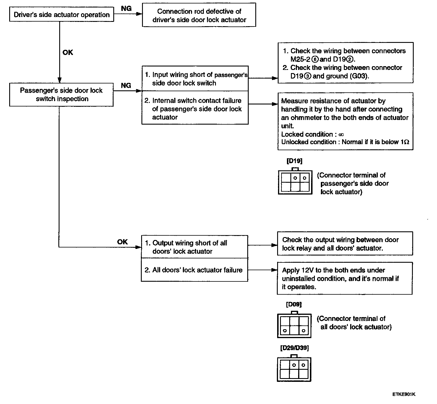 POWER DOOR LOCK1. Lock function works but unlock function does not work.
