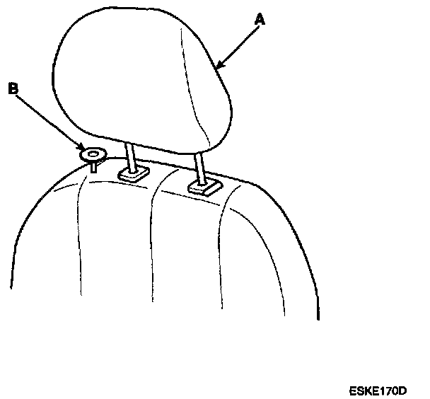 2. Remove the headrest (A) and rear seat lock knob (B).