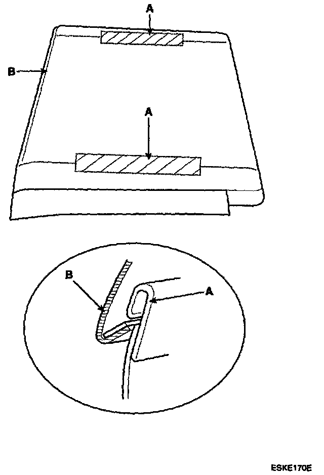 3. Release the hook strip (A) and fold back the seat back cover (B).